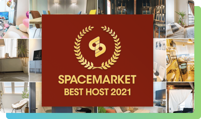 レンタルスペース予約ポータルサイト「スペースマーケット」にて、ベストホスト賞を3年連続で受賞。※利用数及び顧客満足度の高いホストを選出。2021年度は16,745件から選ばれました。